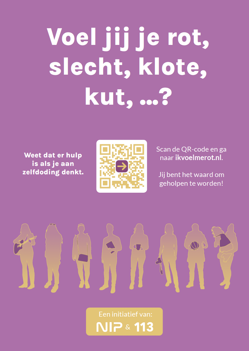 Poster voor jongvolwassenen (18-30 jaar) met gedachten aan zelfdoding, die willen weten wat er mogelijk is aan hulp en hoe het werkt.