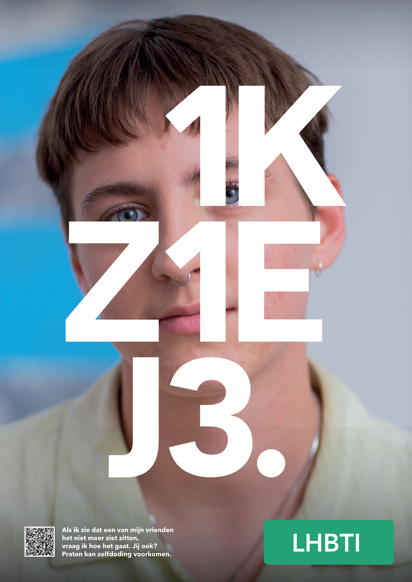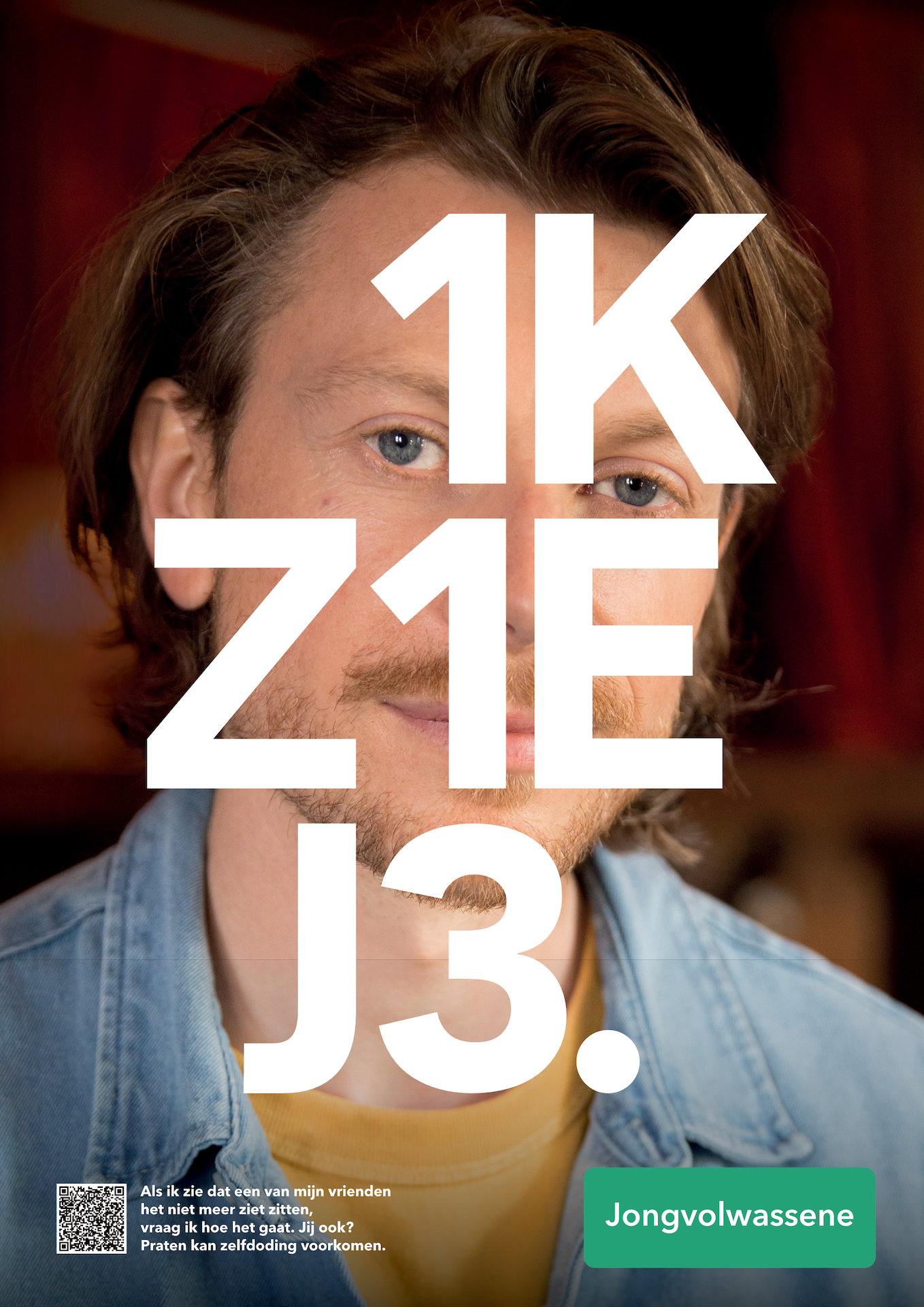 Poster voor jongvolwassenen (18-30 jaar) met gedachten aan zelfdoding, die willen weten wat er mogelijk is aan hulp en hoe het werkt.